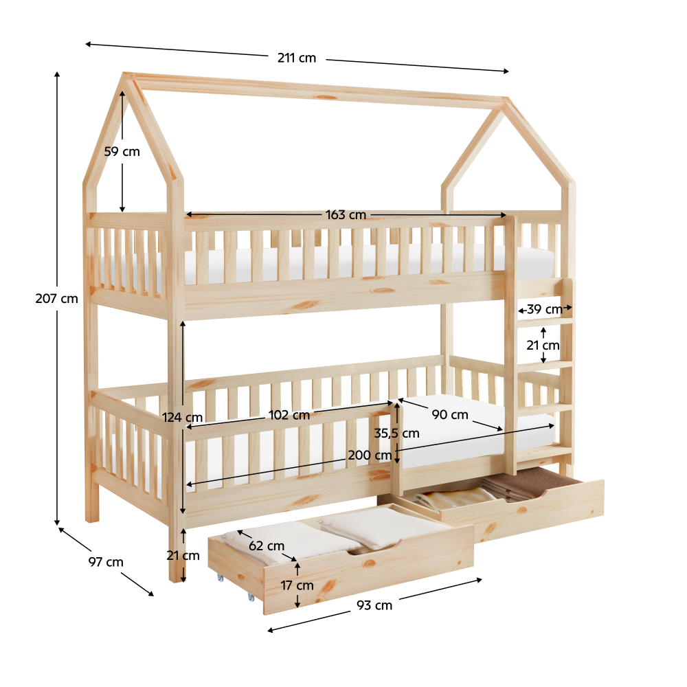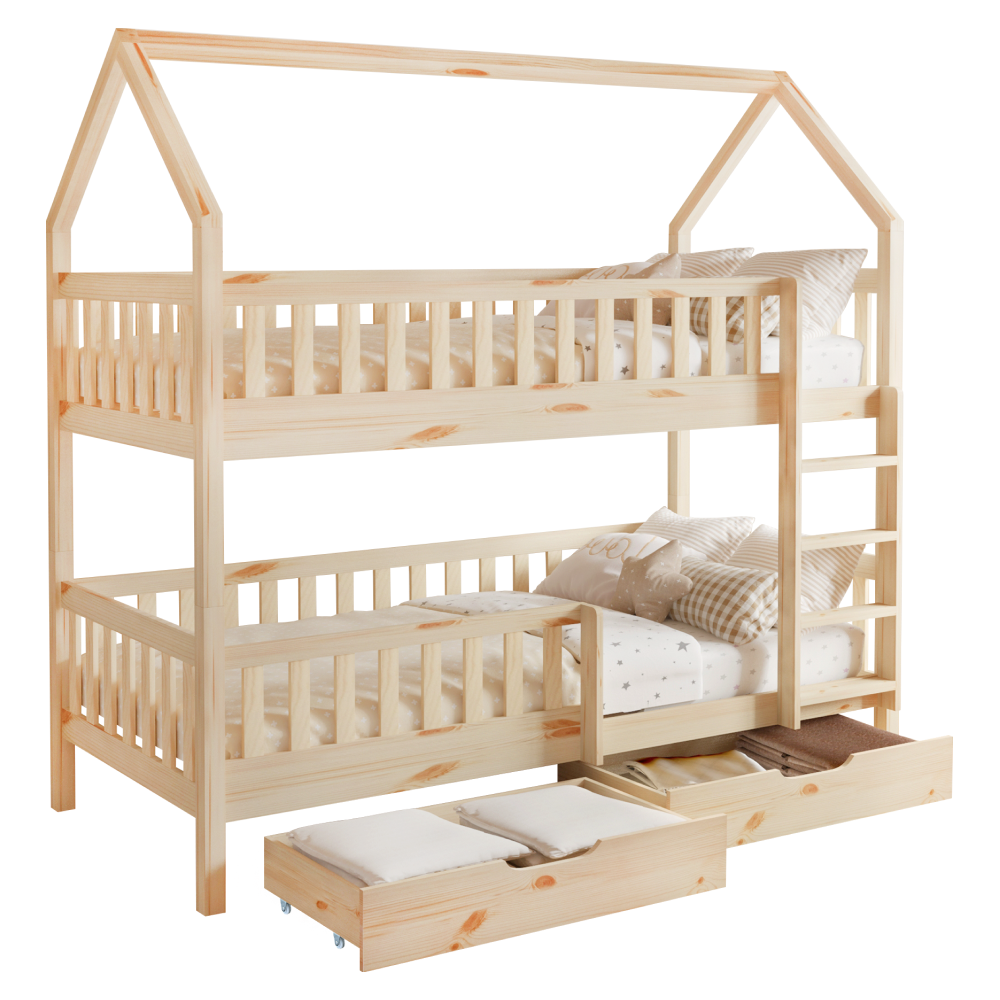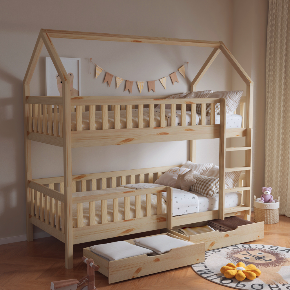 Montessori patrová postel VENITA včetně roštu. Přírodní