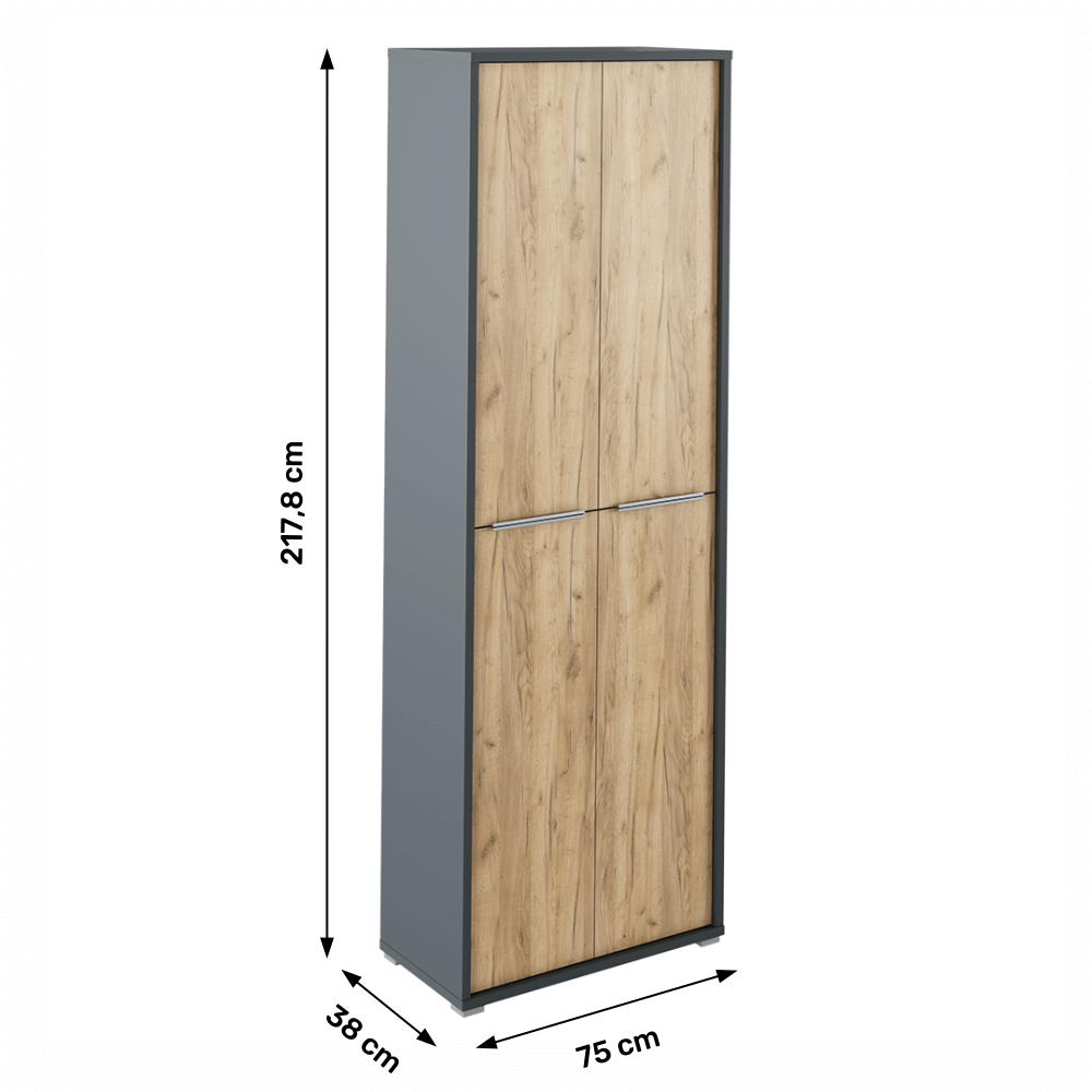 Vysoká skříň s policemi, grafit/dub artisan, RIOMA NEW TYP 05