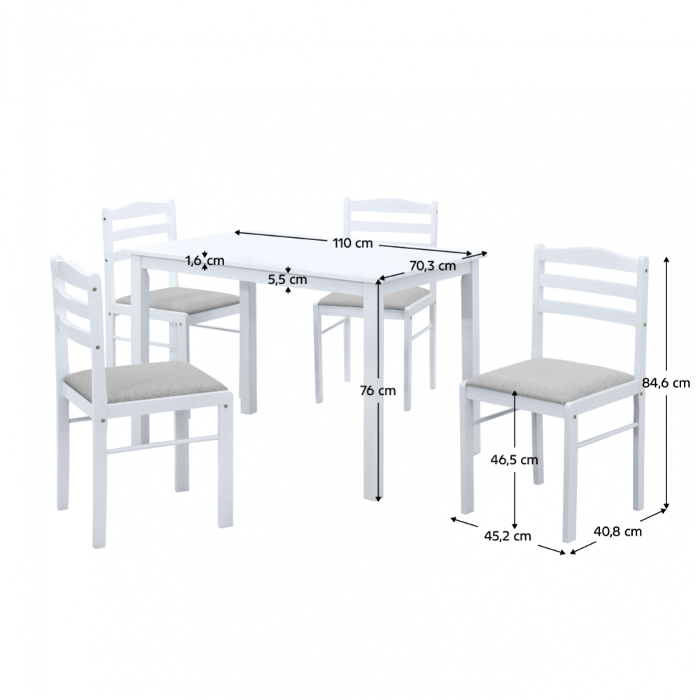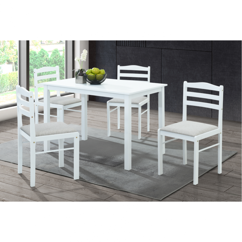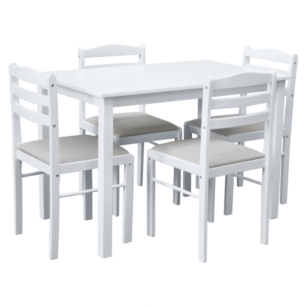Jídelní set 1+4, bílá/béžovošedá, SOMIN