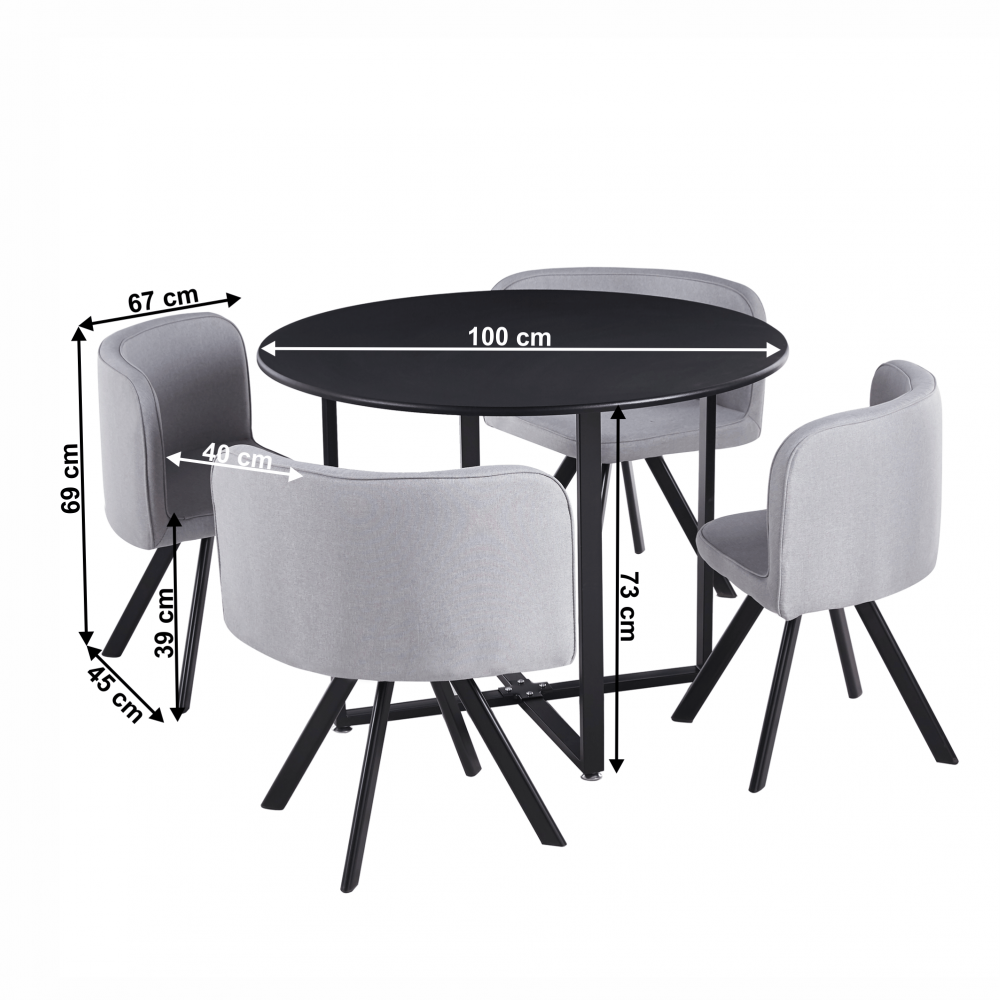Jídelní set 1+4, černá/světle šedá, BEVAN NEW