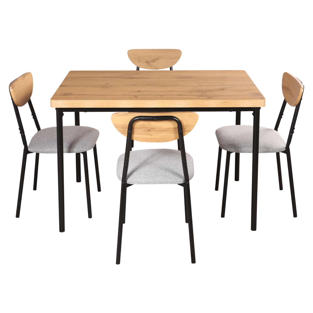 Jídelní set MADIO. Dub světlý/šedá/černá