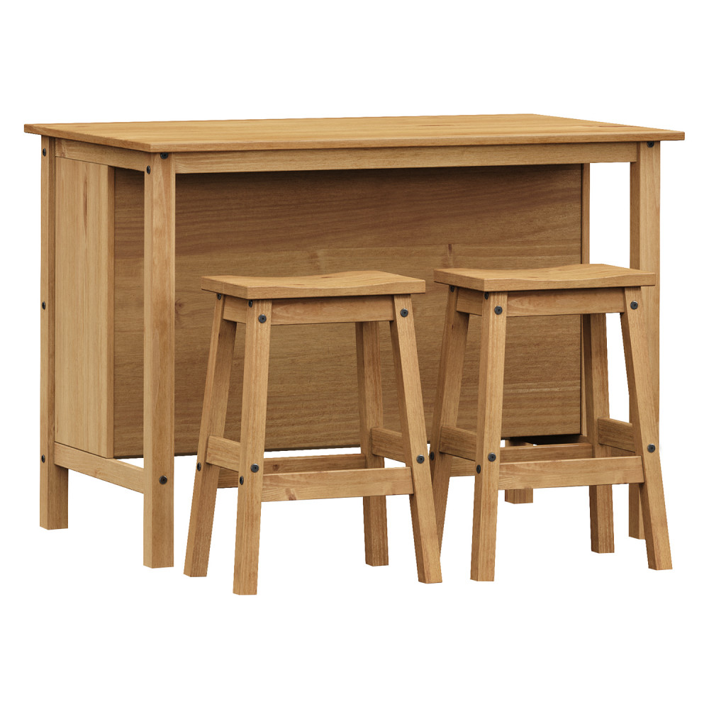 Kuchyňský ostrůvek a 2 barové stoličky CORONA. Bílý vosk/ med vosk