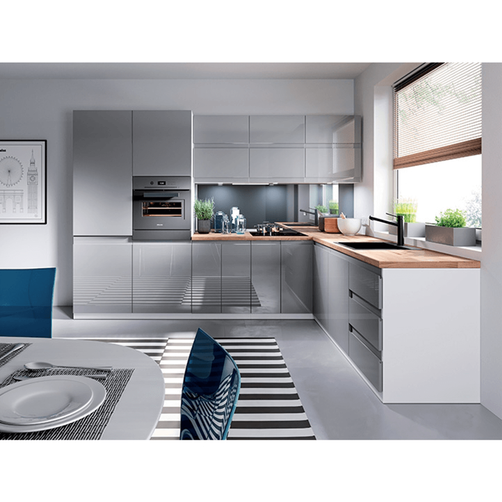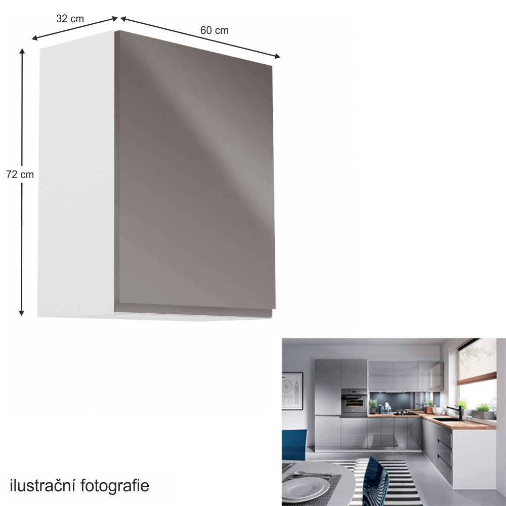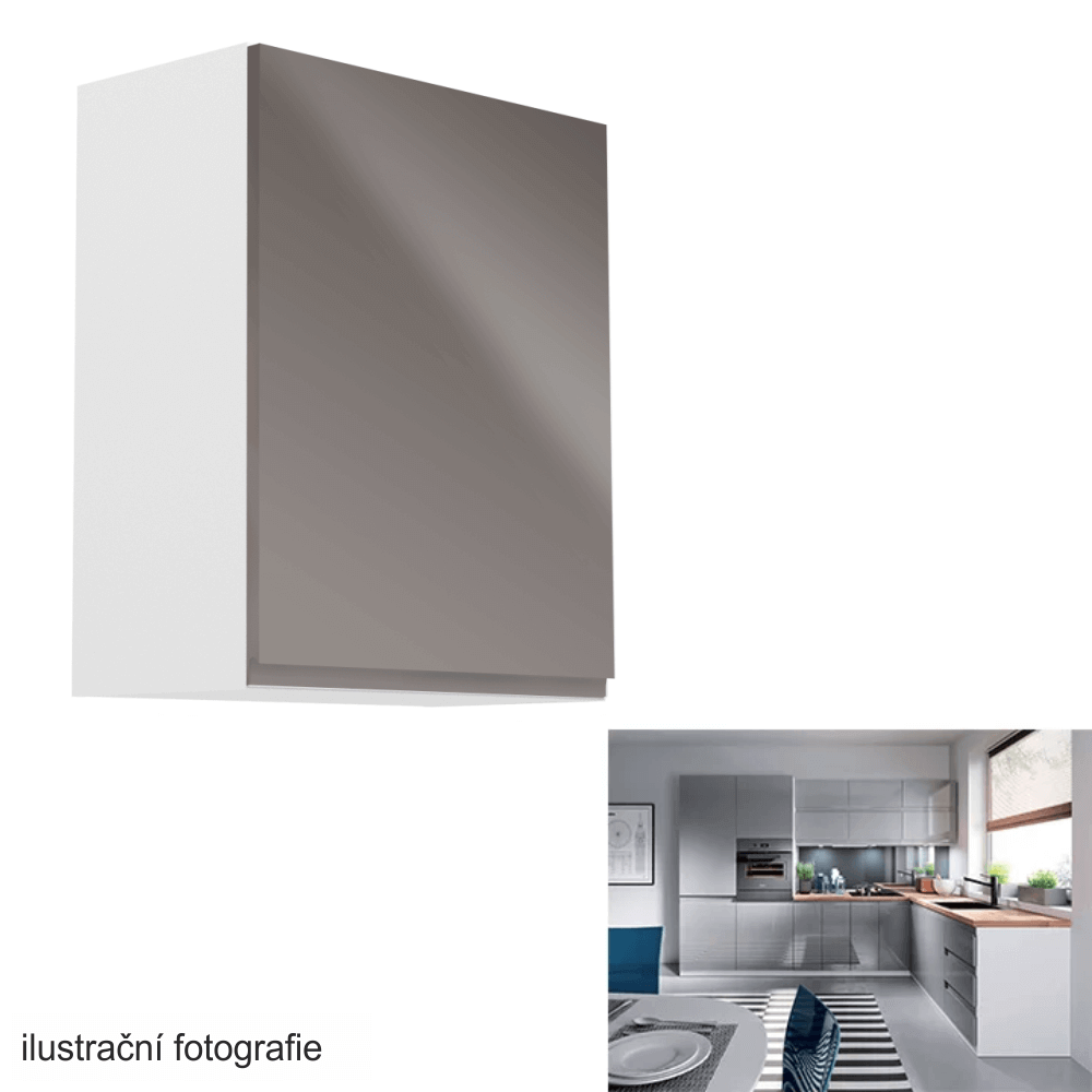 Horní skříňka, bílá / šedý extra vysoký lesk, pravá, AURORA G601F