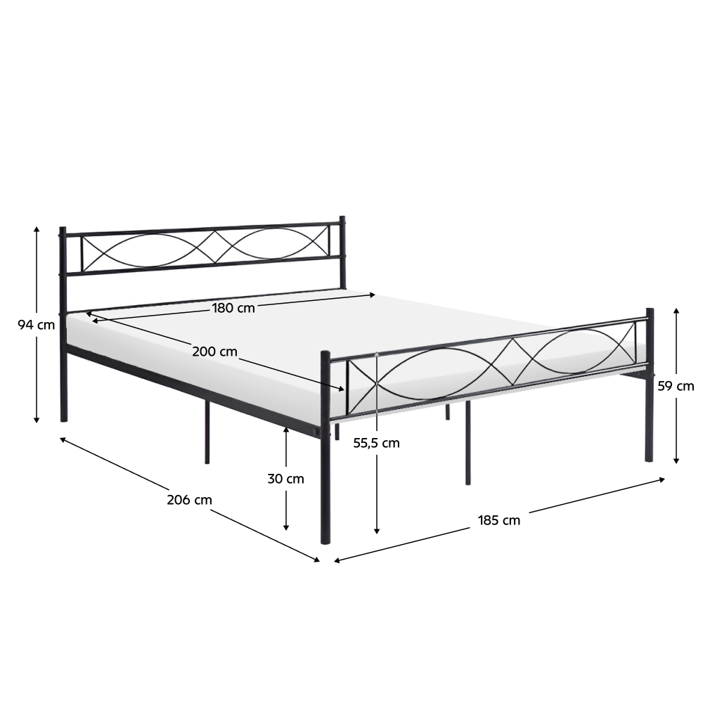 Kovová postel STELVIA 180x200 černá s roštem – pevná manželská postel na nožičkách