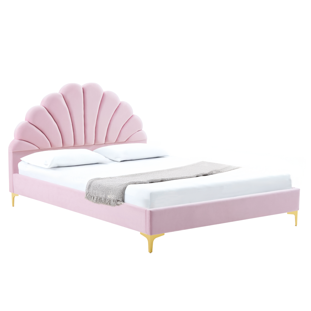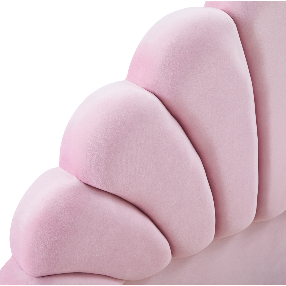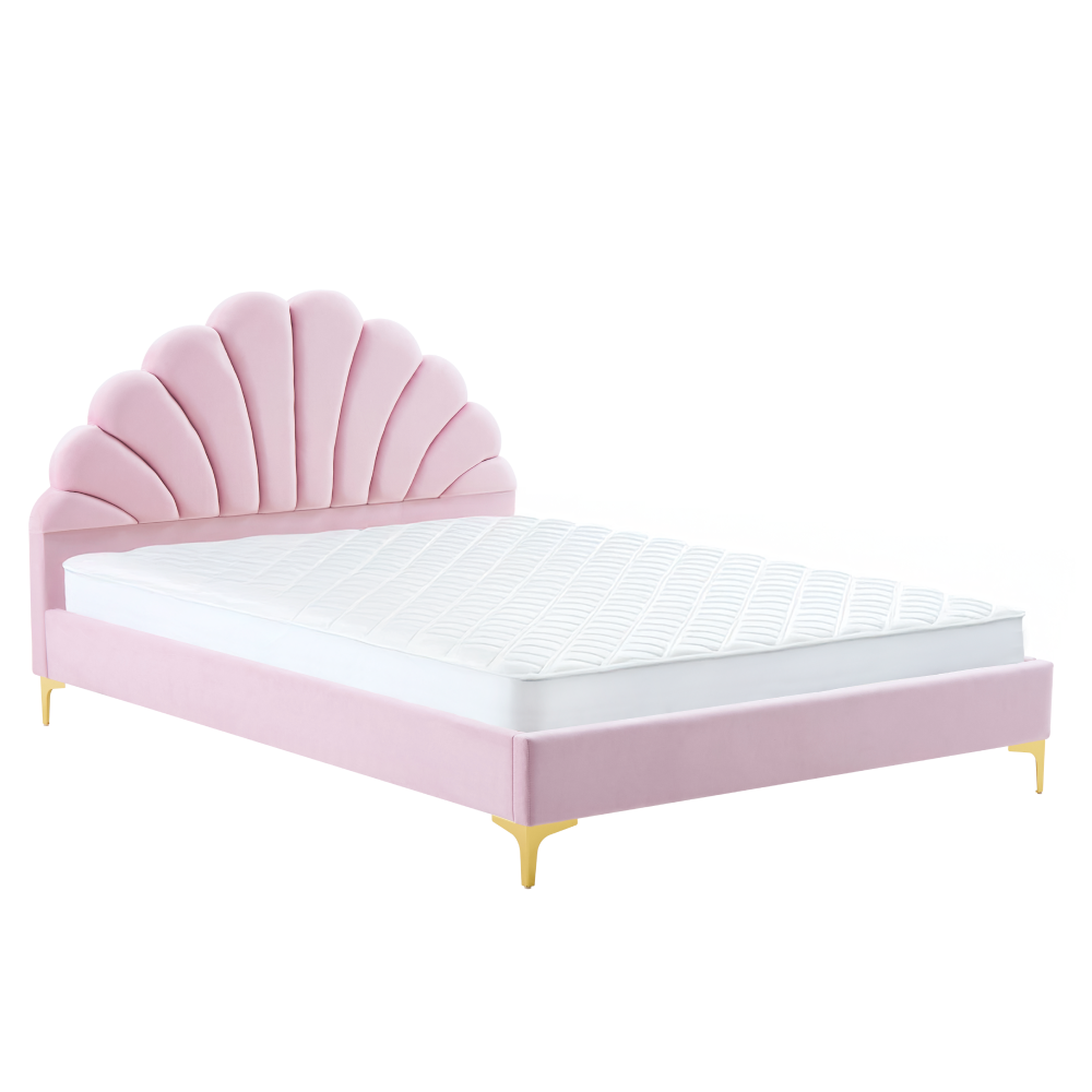 Postel ISADORA 140x200 růžová Velvet – čalouněná postel s čelem ve tvaru mušle