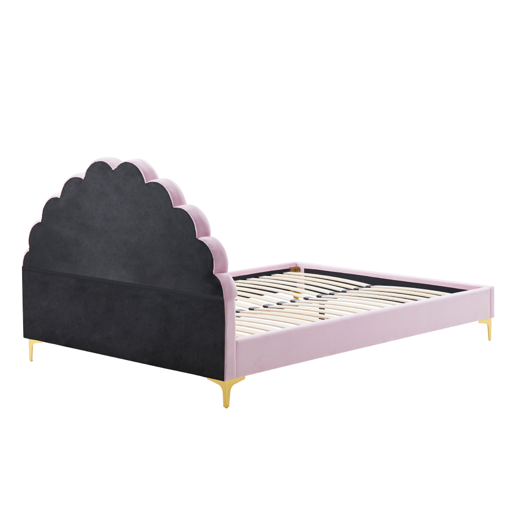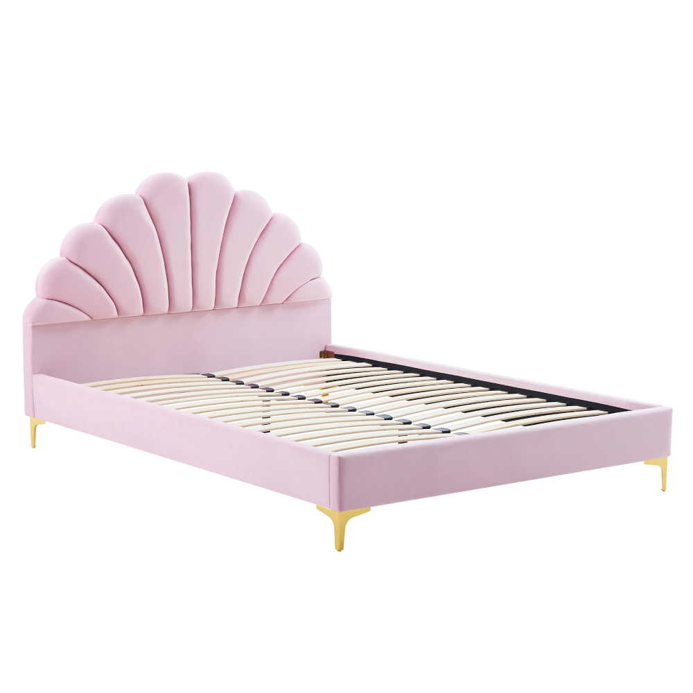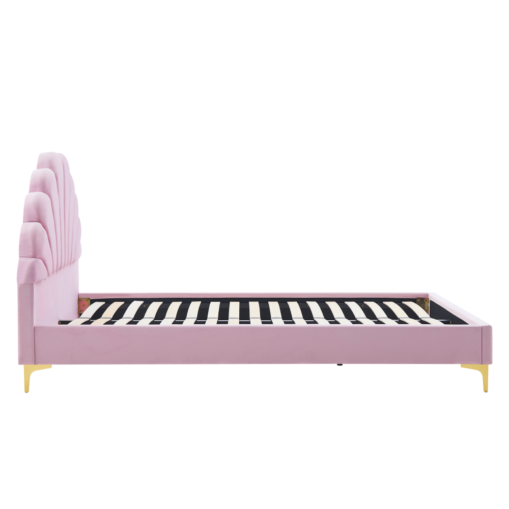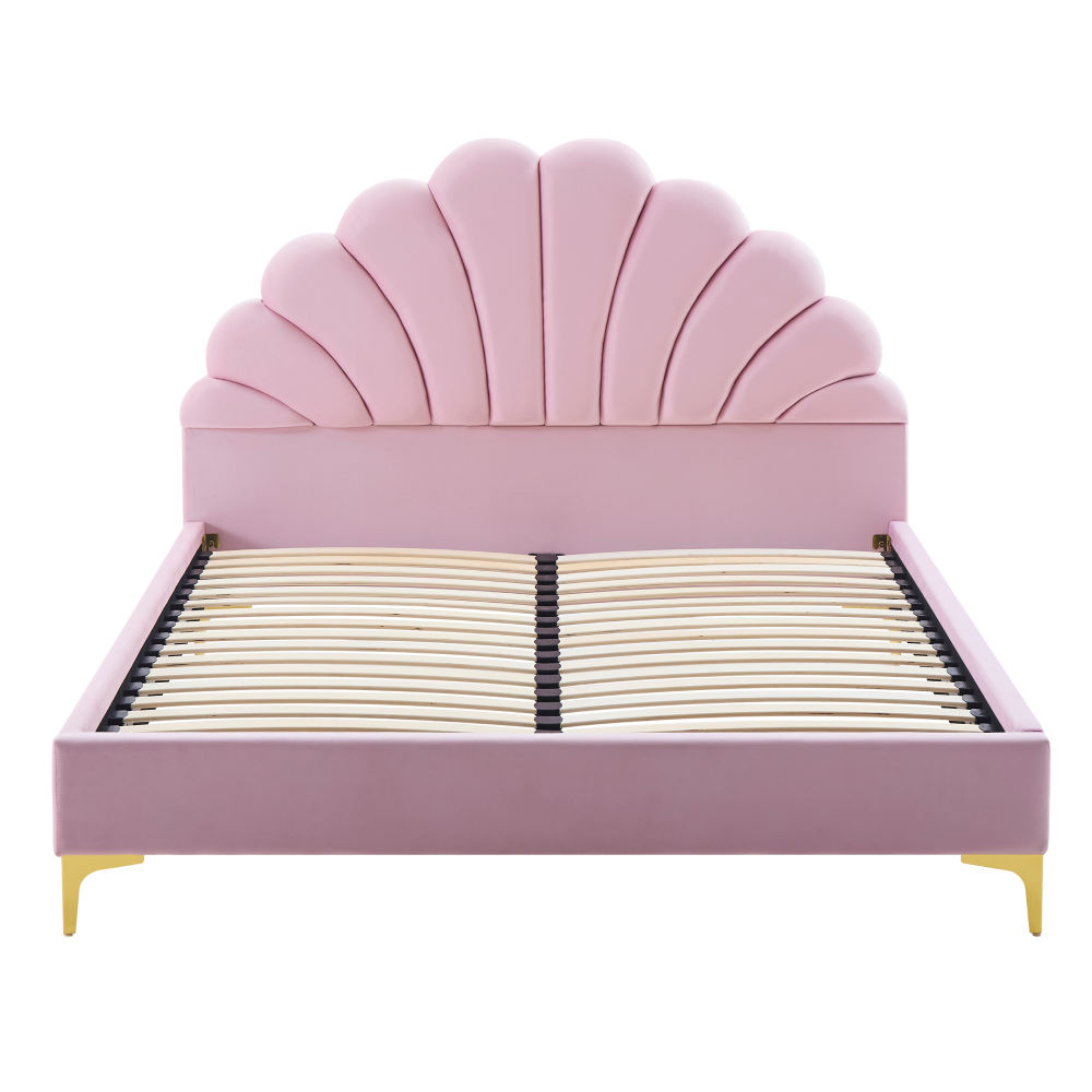 Postel ISADORA 140x200 růžová Velvet – čalouněná postel s čelem ve tvaru mušle