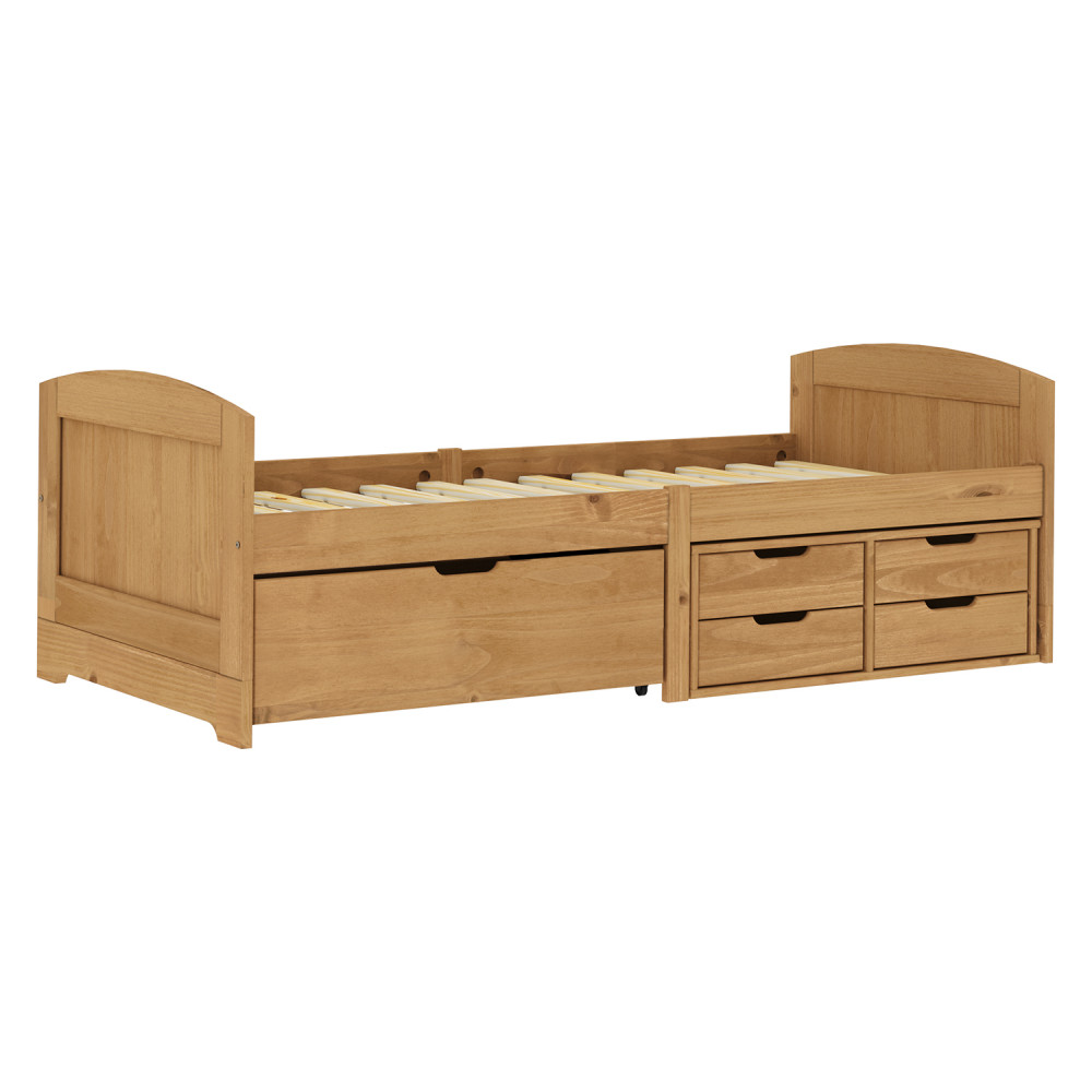 Jednolůžková postel 90x200 MAXIMA s úložným prostorem včetně roštu. Masiv borovice vosk