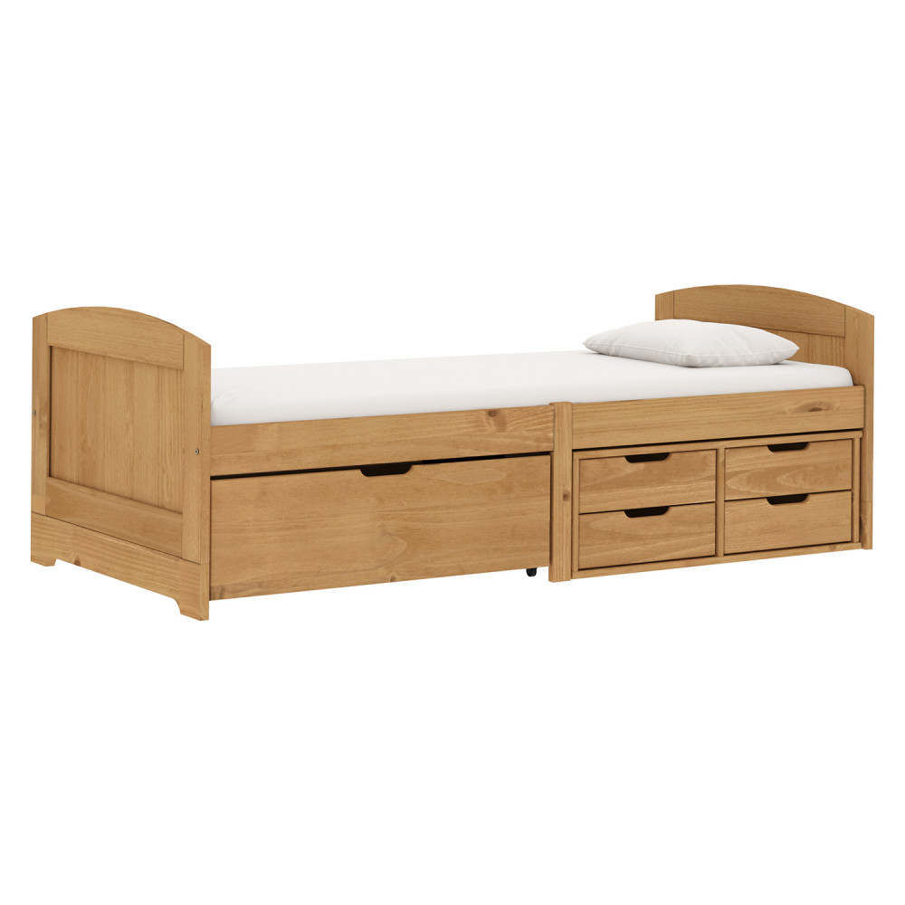 Jednolůžko MARY 90x200 vosk – postel z masivu borovice se zásuvkami a roštem
