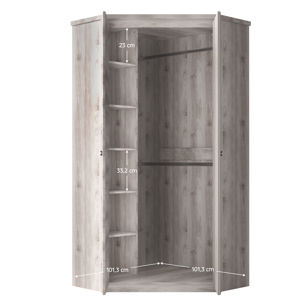 Šatní a policová rohová skříň JESI 2D. Kaštan nairobi