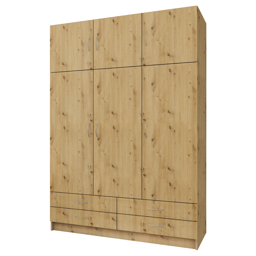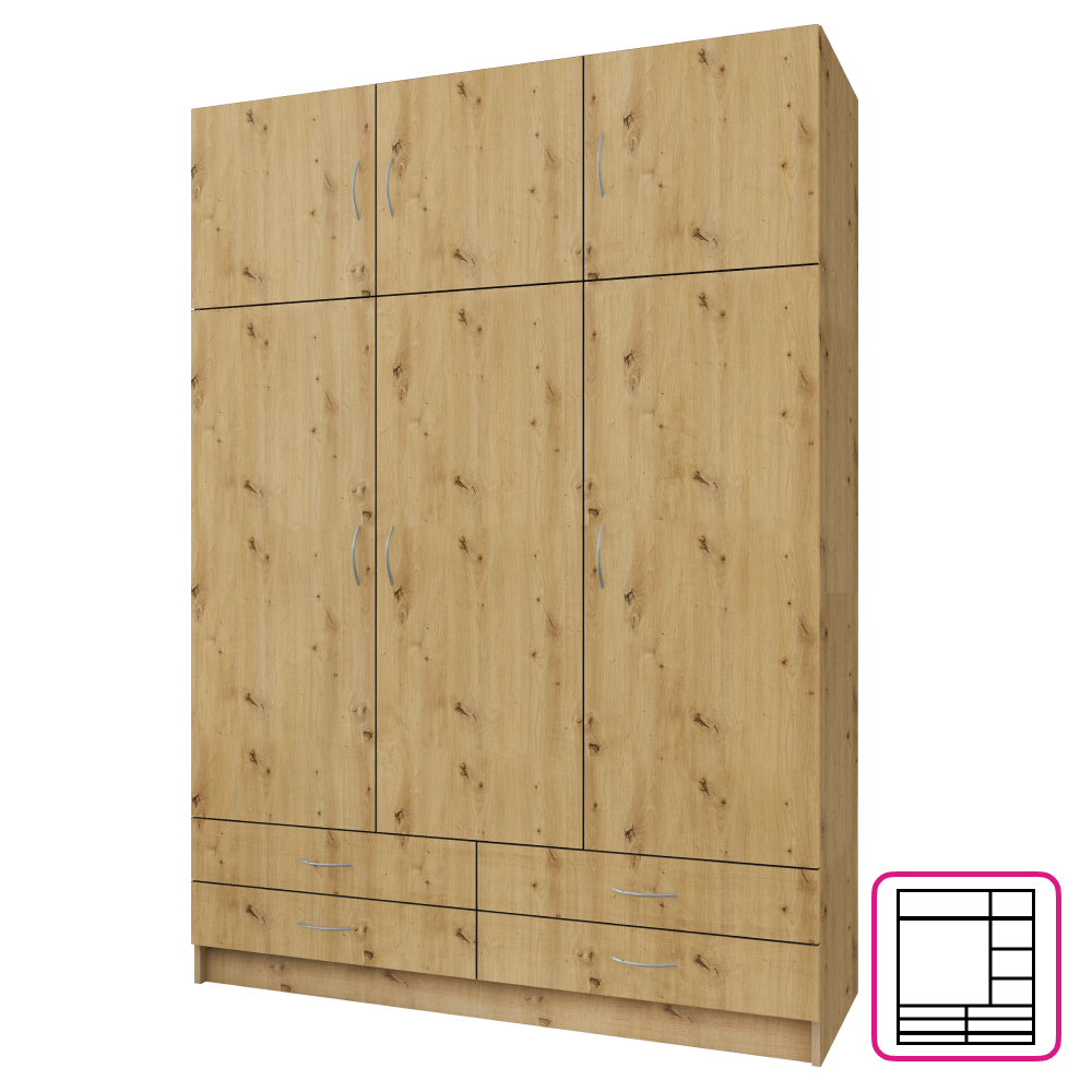 Šatní a policová skříň GERI 3D se šuplíky. Dub artisan