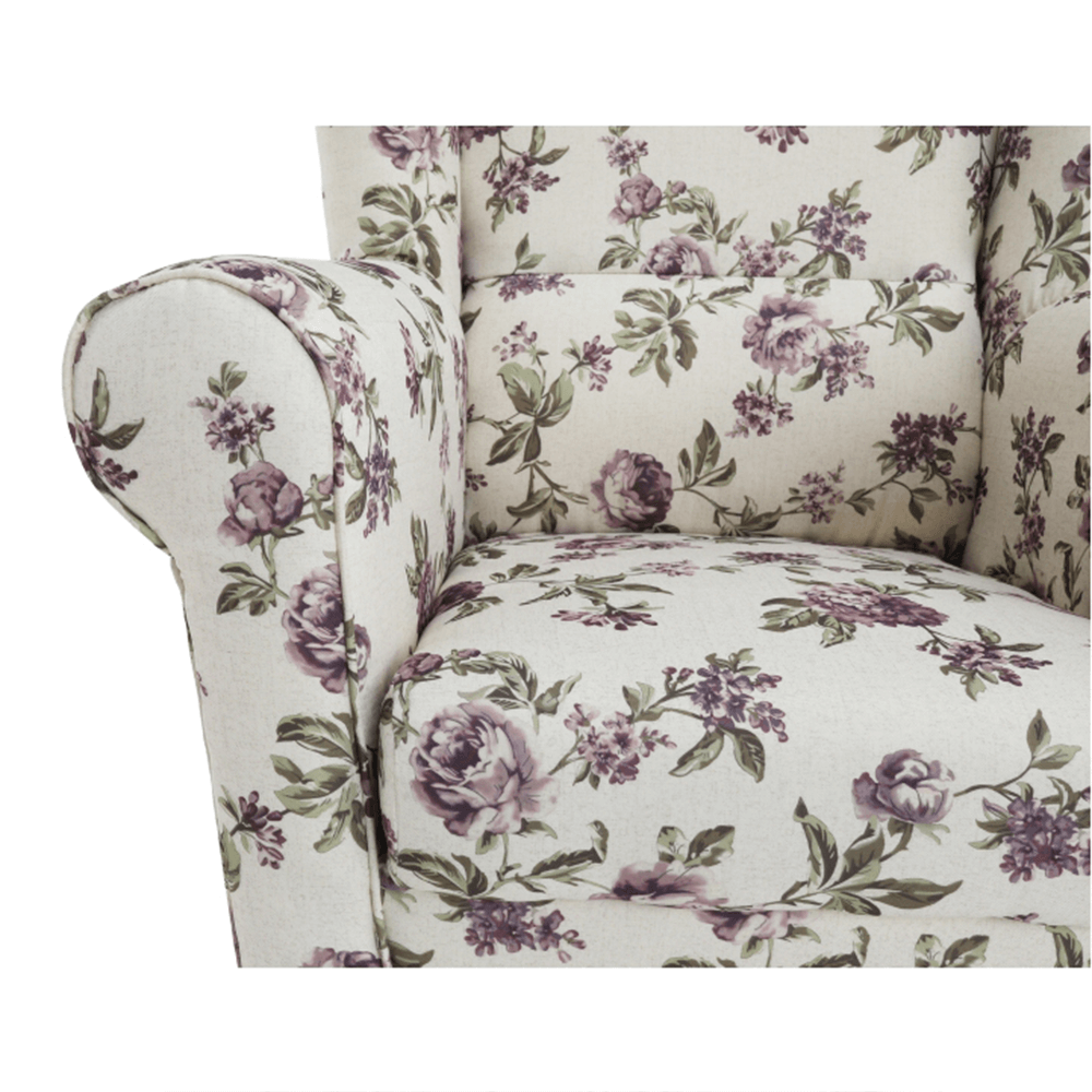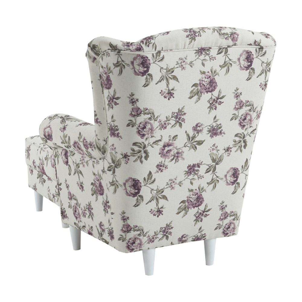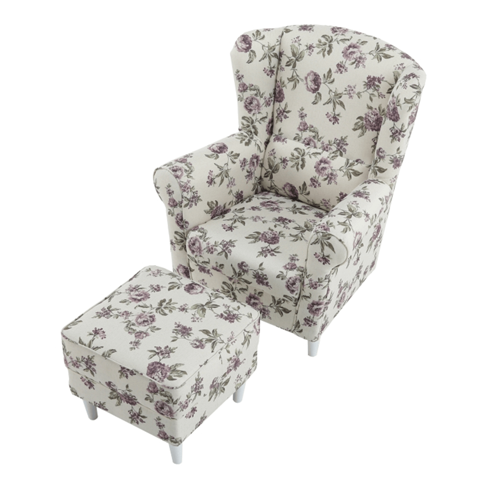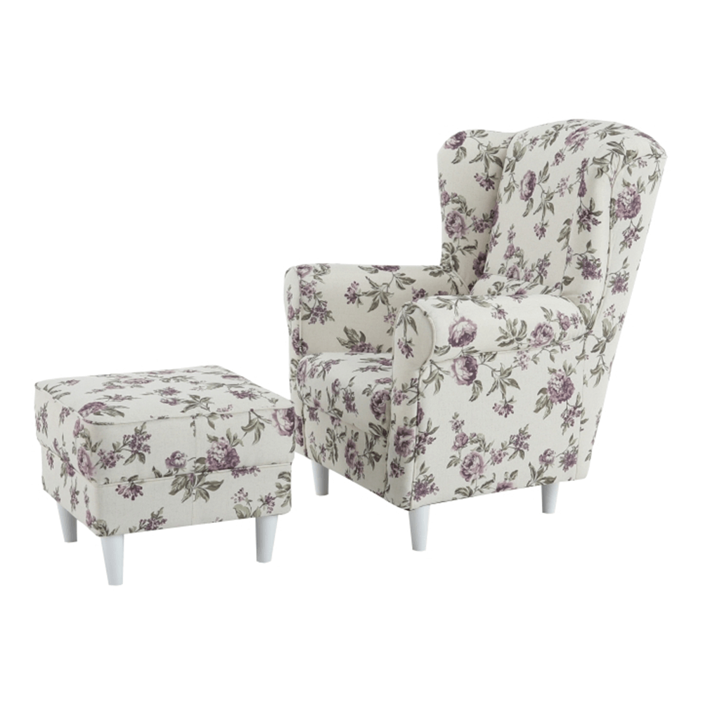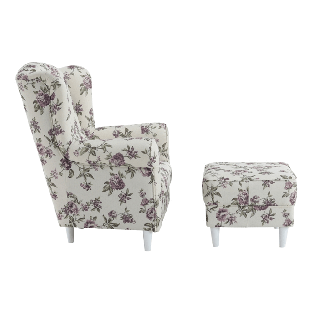Křeslo ušák s taburetem, látka vintage vzor, ASTRID