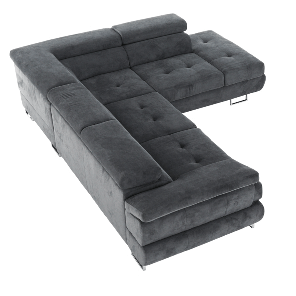 Sedací souprava s úložným prostorem, tmavě šedá, látka, levá, BUTON R