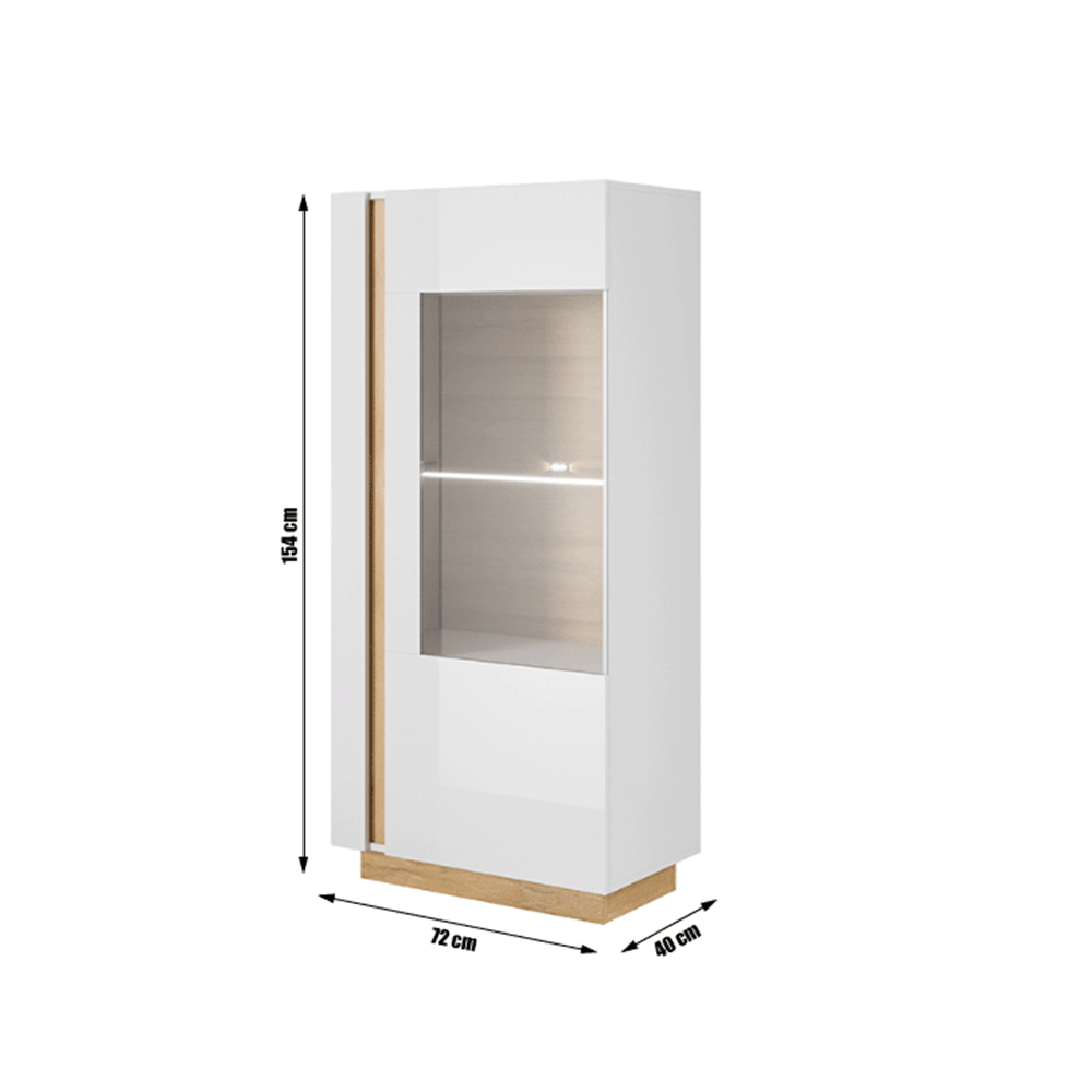 Vitrína 72, bílá / dub grandson / bílý lesk, CITY