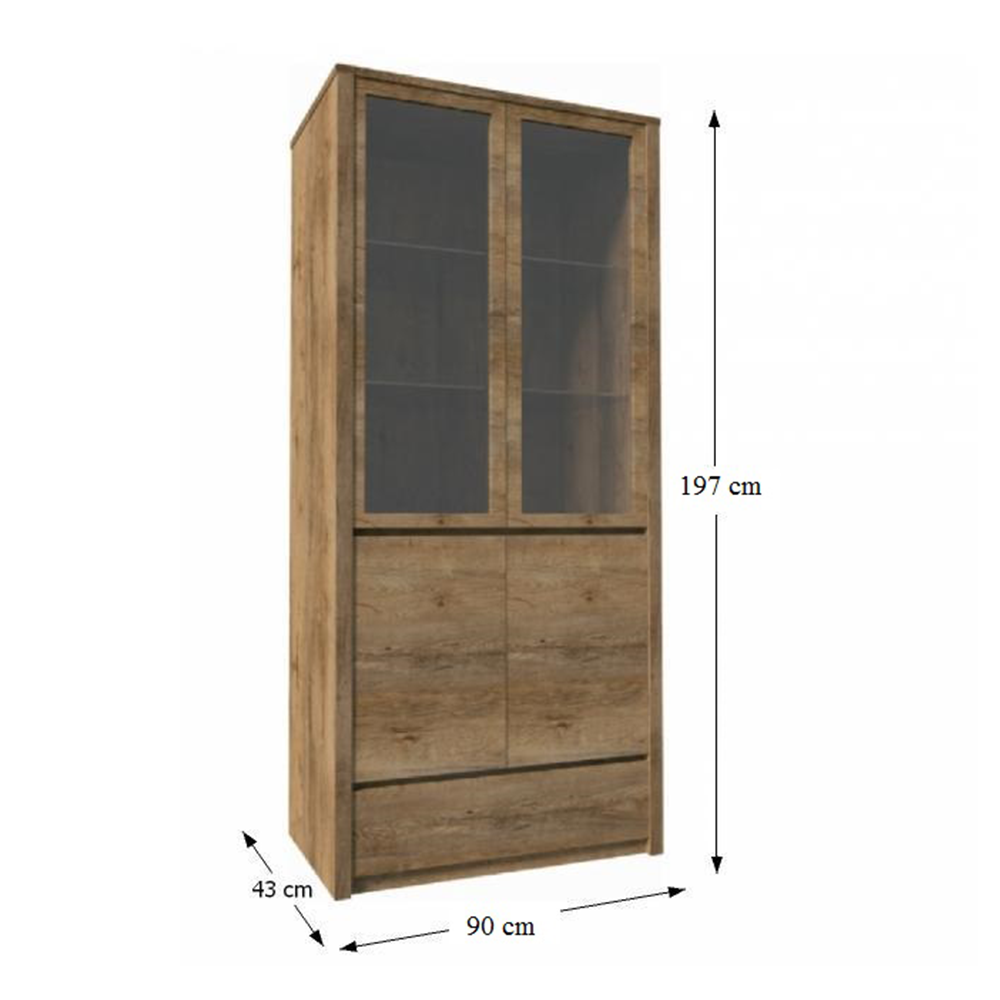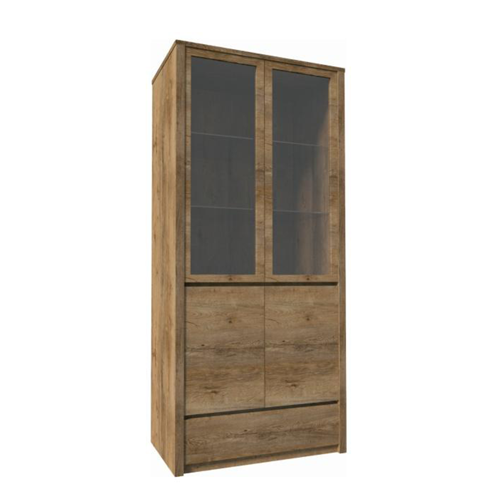 Vitrína MONTANA W2D dub lefkas tmavý – široká prosklená vitrína