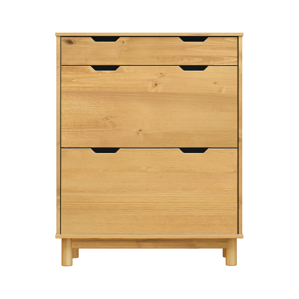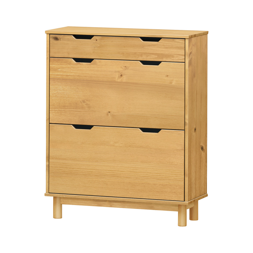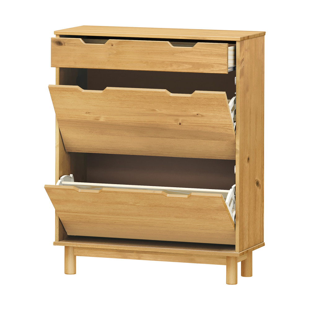 Výklopný botník BONITO vosk masiv borovice – se zásuvkou a dvouřadými výklopy (medový odstín)