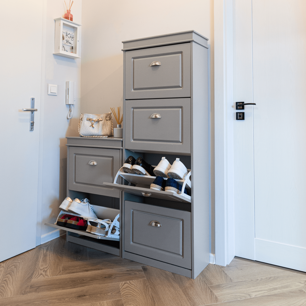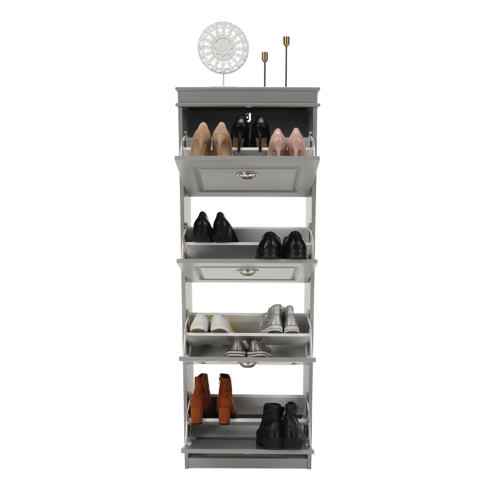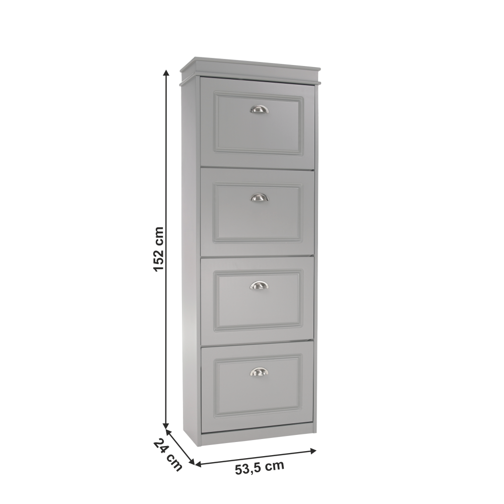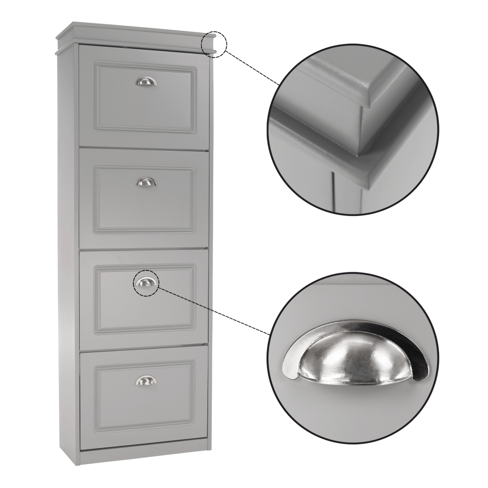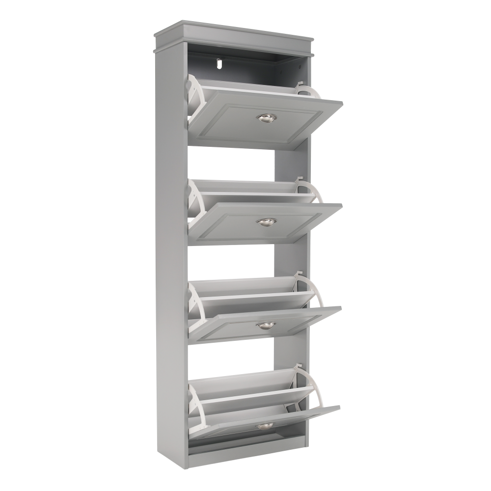 Botník SEBER šedý – 4řadý výklopný botník až pro 16 párů bot