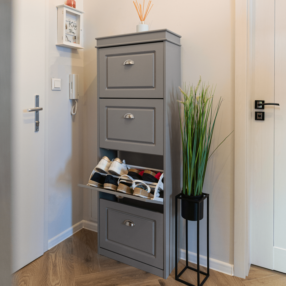 Tagy: seber, botník, výklopný botník, vysoký botník, předsíňový nábytek, šedý botník, úložný nábytek