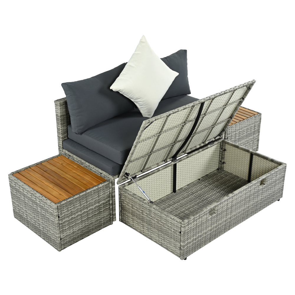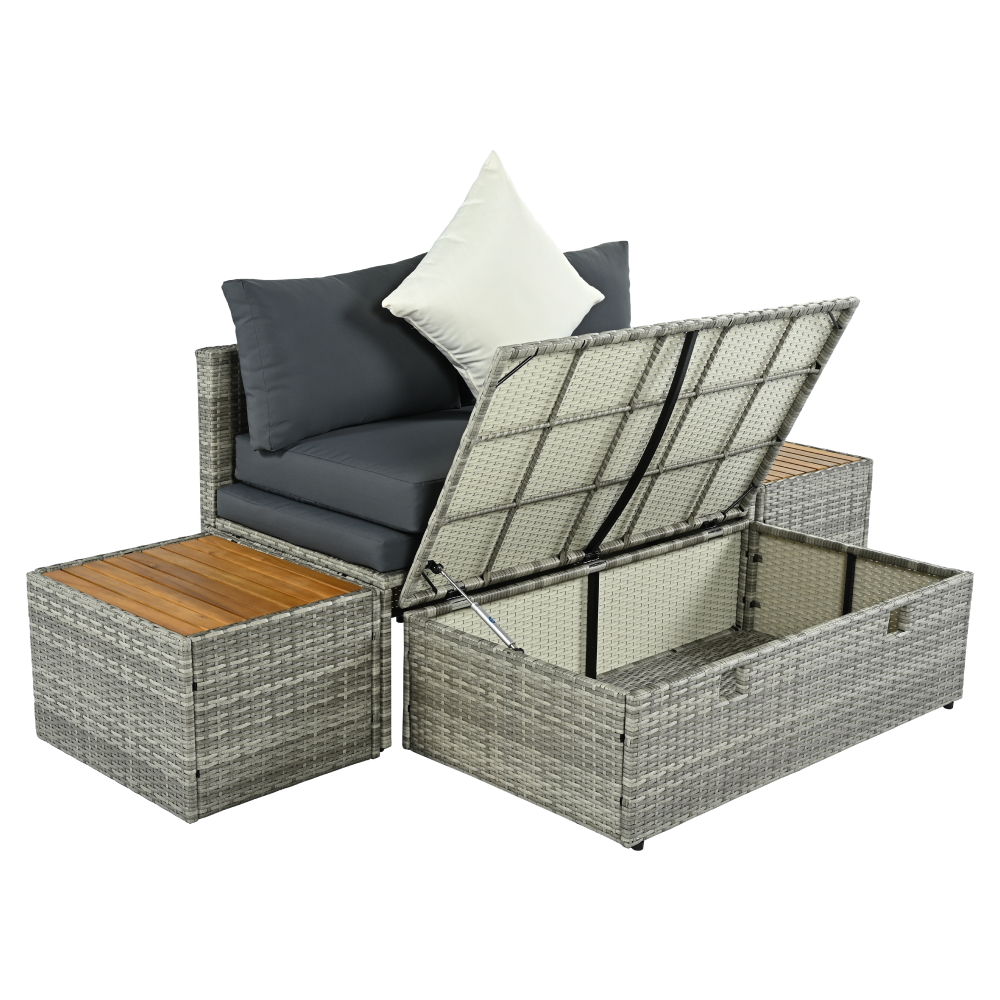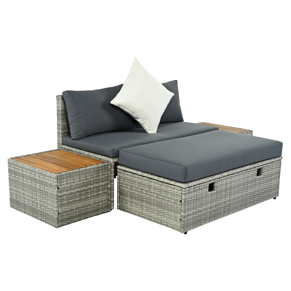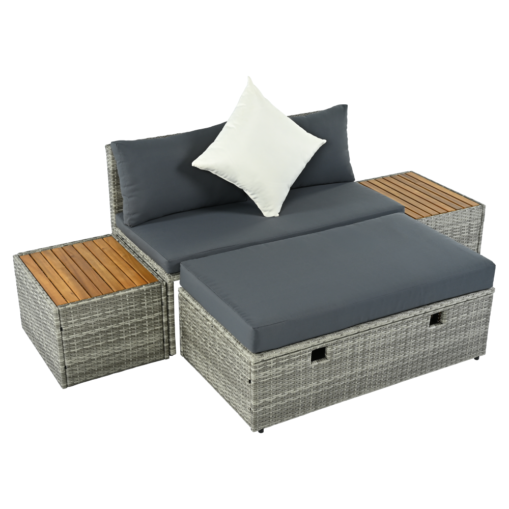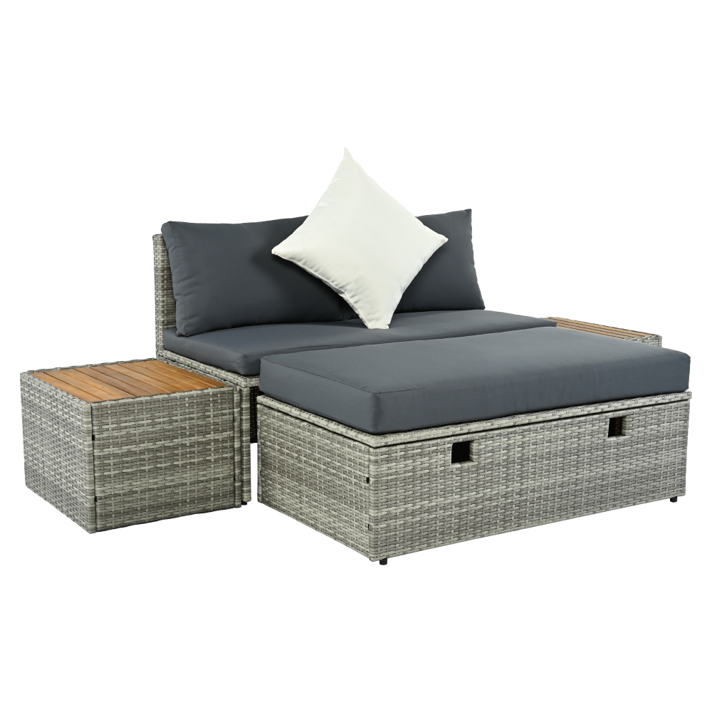 Zahradní ratanový set DEBRA. Šedá/přírodní/krémová